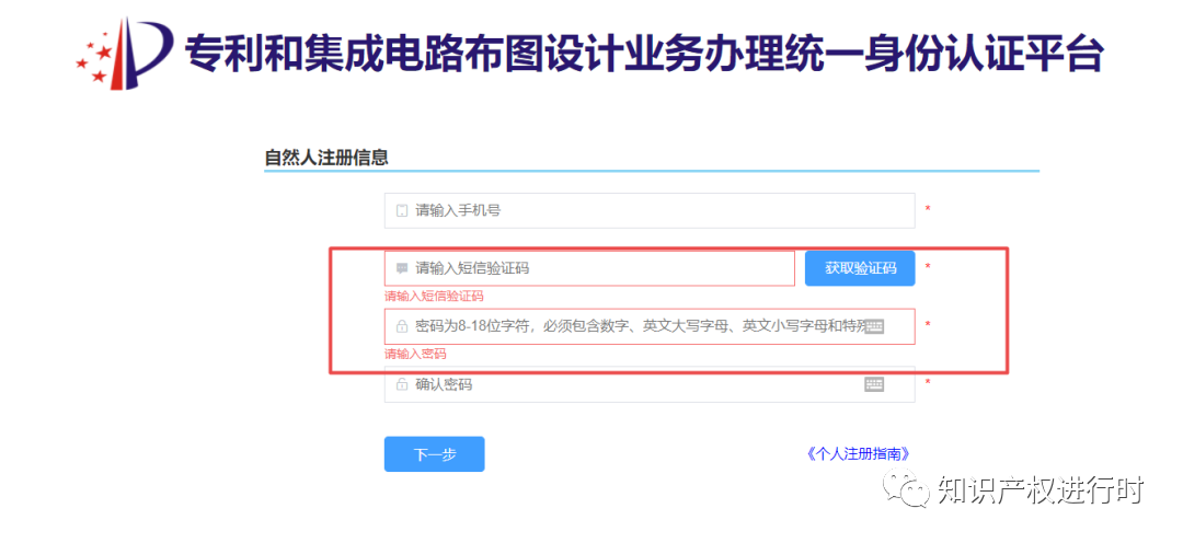 第二步:進(jìn)行手機(jī)號驗證并填寫密碼: